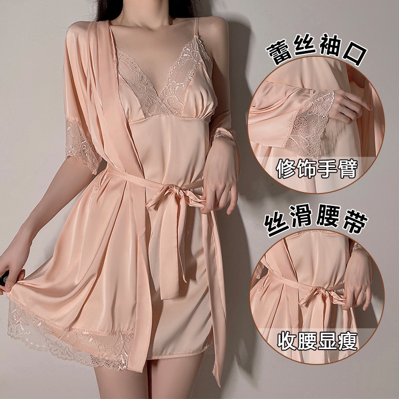 氷糸パジャマ女2023新作夏セクシーサスペンダー寝スカートレース純欲風春秋ホームウェア