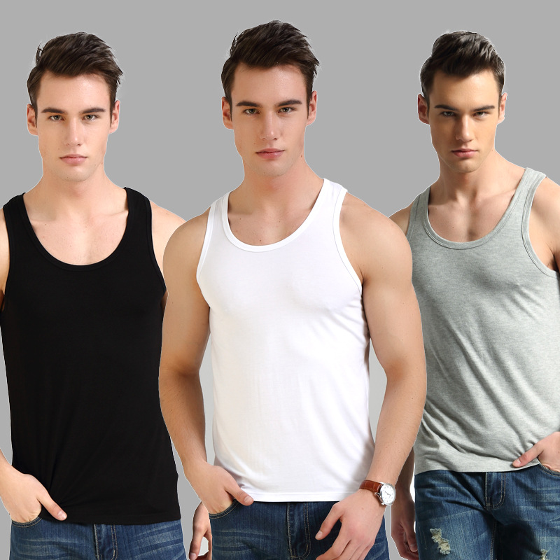 40番手モダールメンズベスト、通気性のあるスポーツフィットネス秋冬用インナーシャツ、ノースリーブ、工場在庫あり