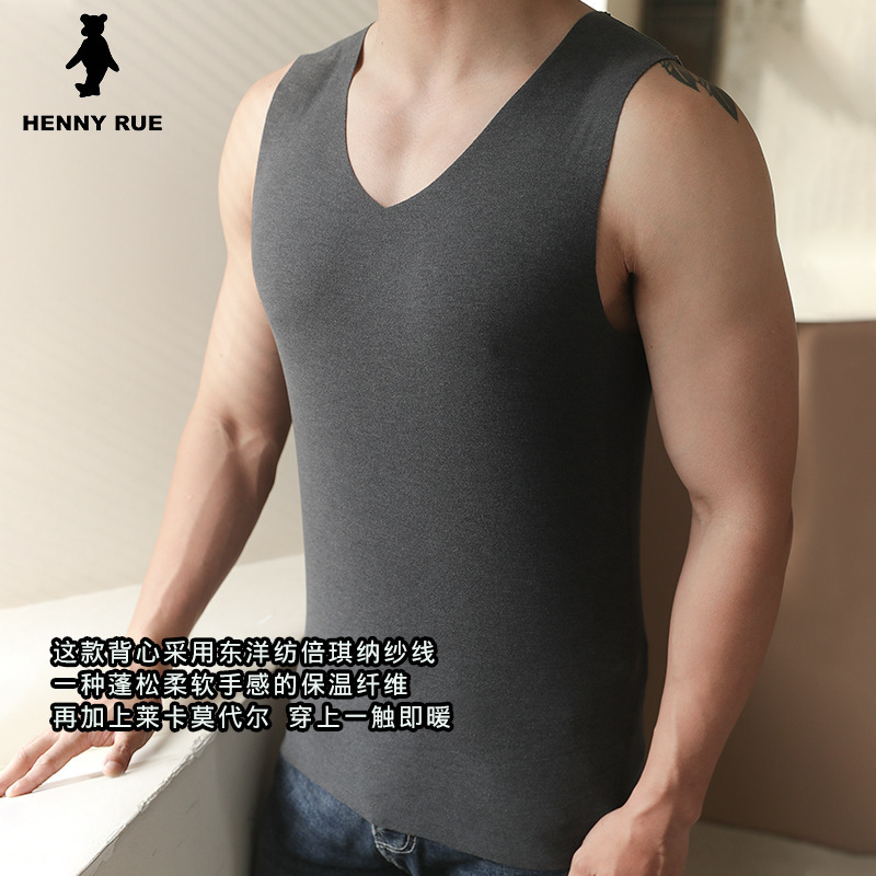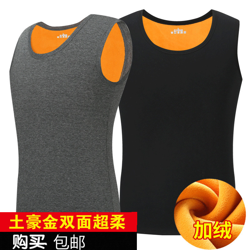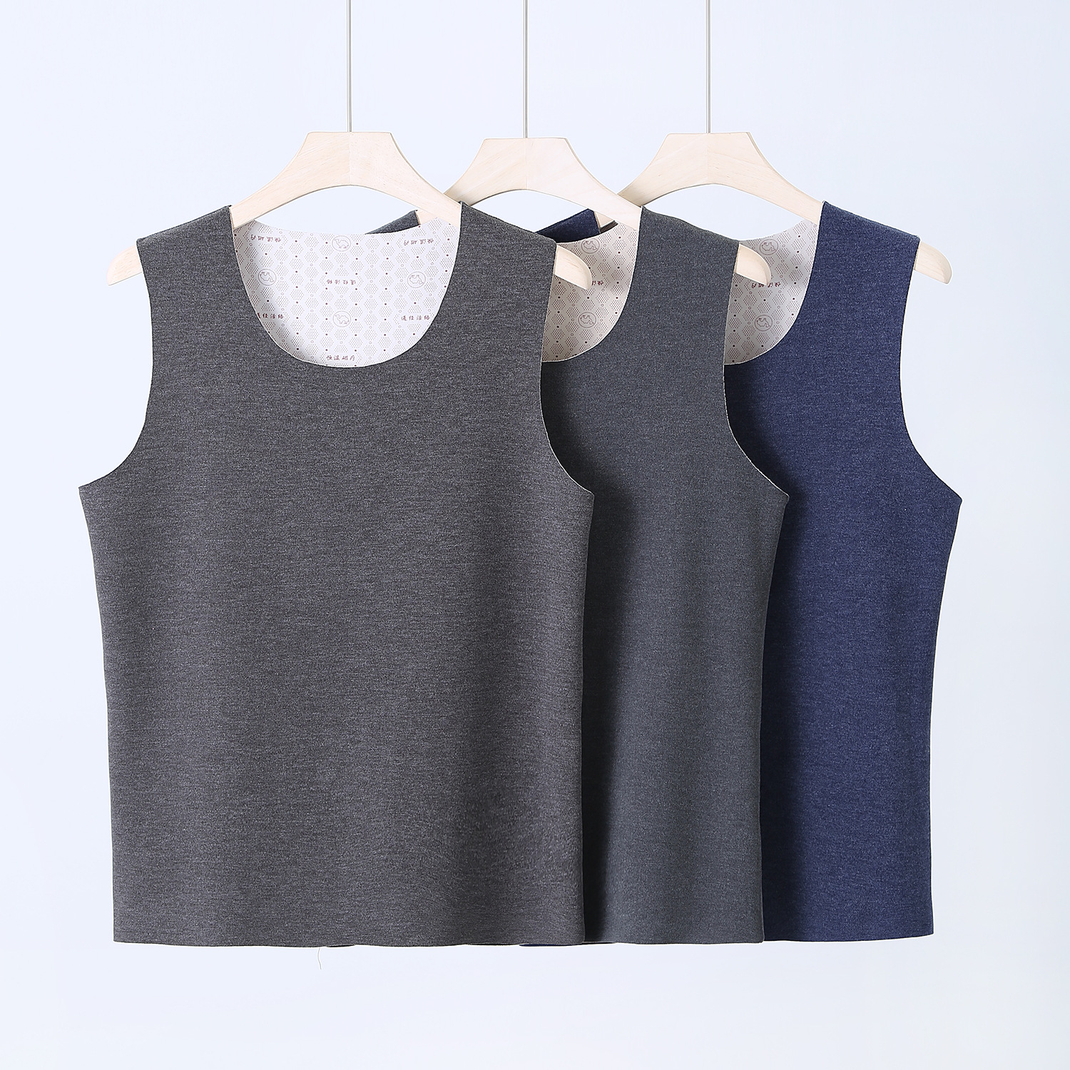 冬の保温ベストの男性は、保温下着のベストを厚くして、肌着の上着の純綿の丸襟を身に着けています。