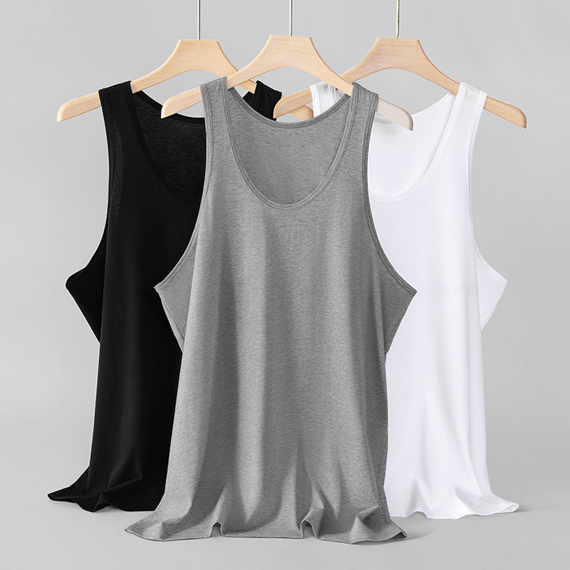 春夏メンズモダールベスト、若者向けランニングスポーツフィットネスノースリーブTシャツ、男性用インナーシャツ卸売