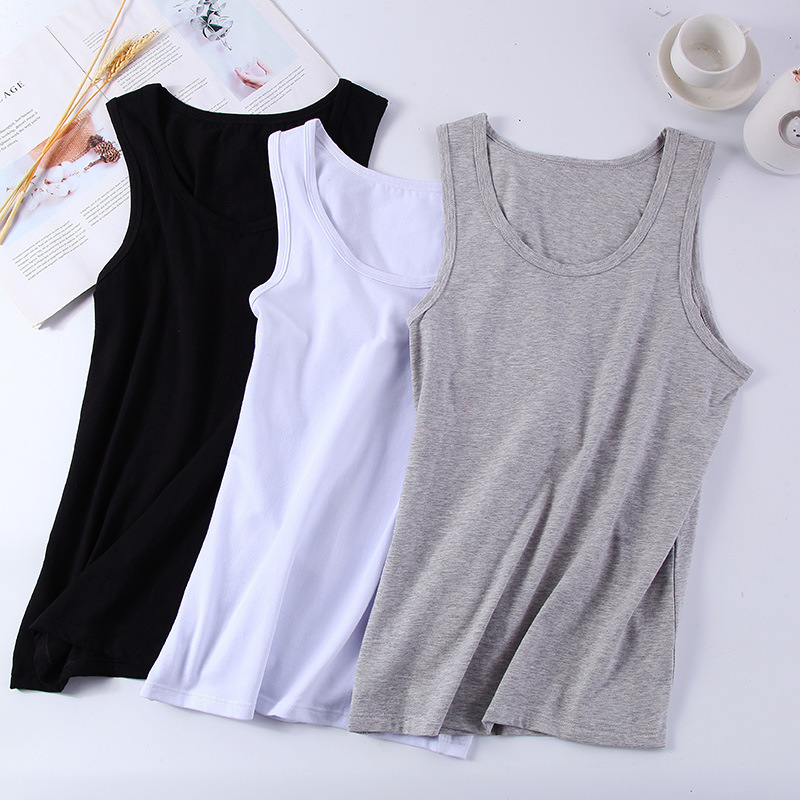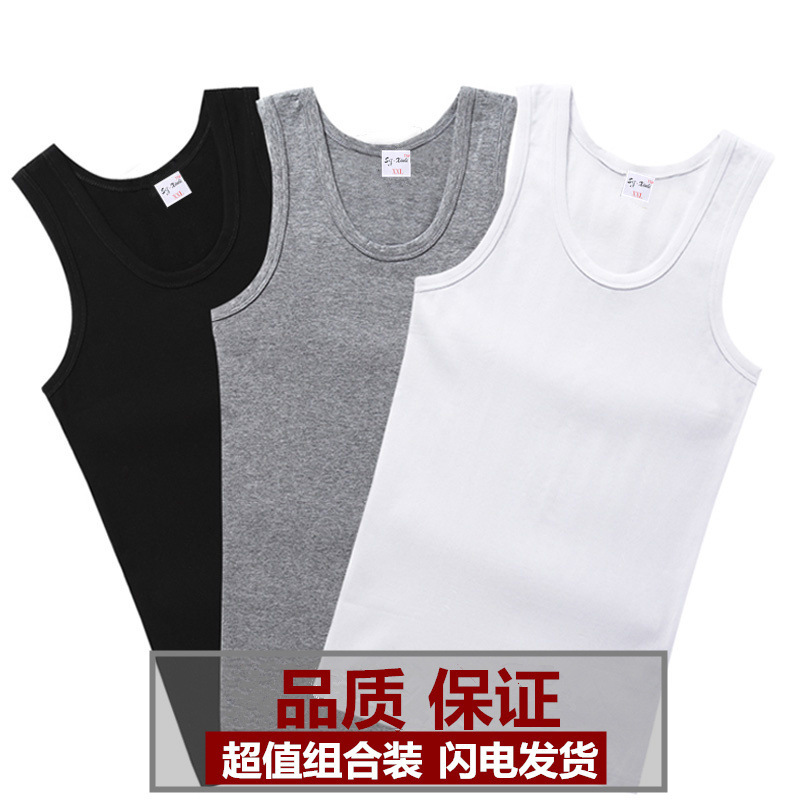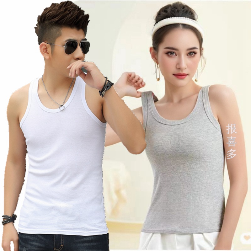 ベスト男性女性黒白色全純綿運動修身底袖なし工字内着ねじカン肩夏