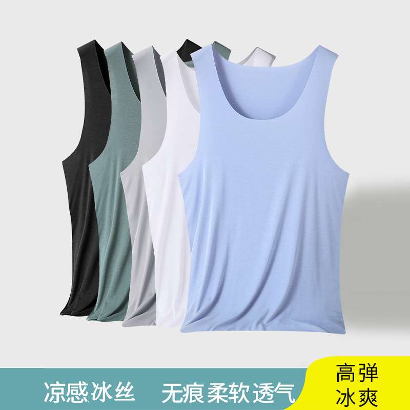 ベストメンズ春夏新作レンチングモーダル涼しく快適なカットオフシームレスインナー吸湿性ベースベスト男性用