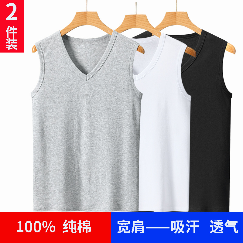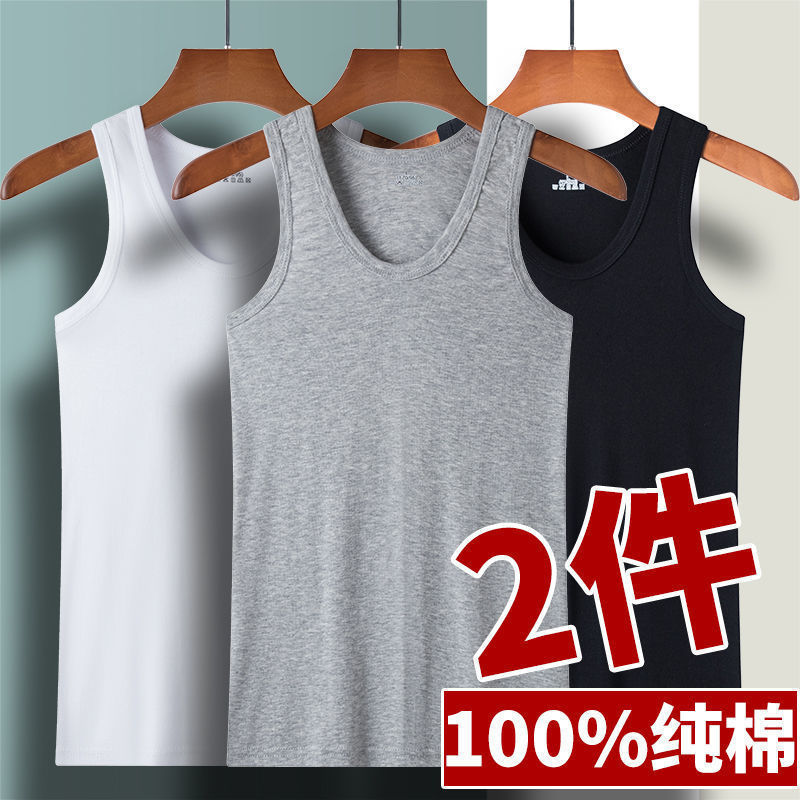 ベスト男性純綿夏は純綿の汗シャツを掛けて、純綿の袖なしの上着を止めます。