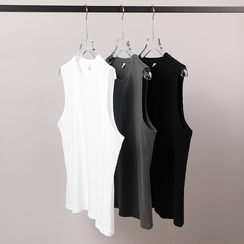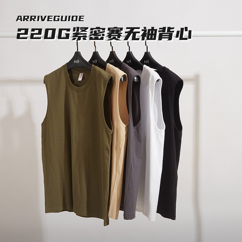 220グラム緊密試合袖なしベスト純綿男性夏青年レジャー運動純色シンプル丸襟シャツ