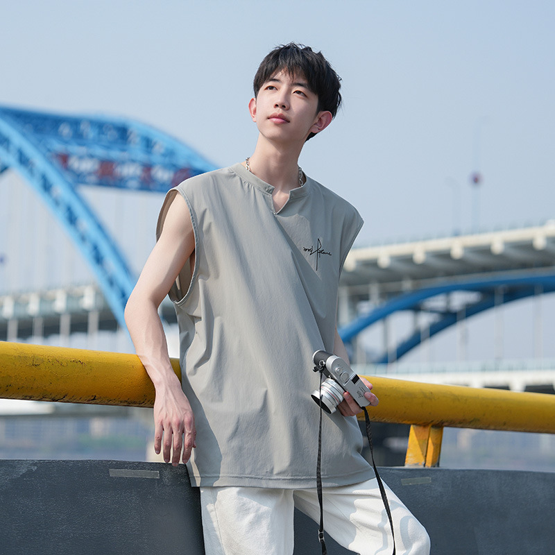 爆発的なアイスベスト男性のトレンドの薄い袖のない丸首がゆったりしています。