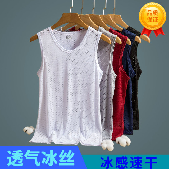 クロスボーダー男性透明メッシュベスト夏氷糸通気運動フィットネスベスト夏超薄型AD327