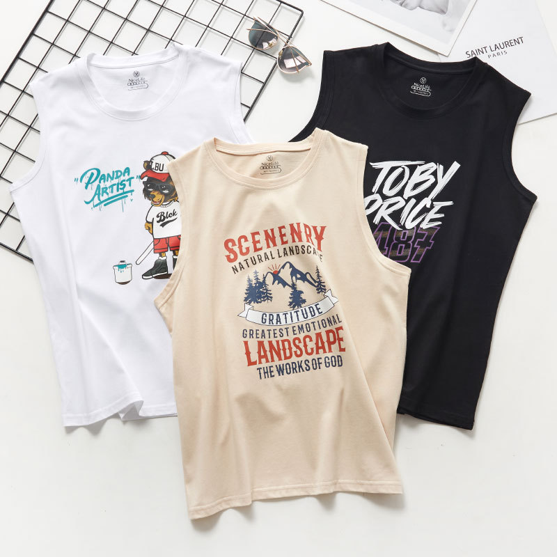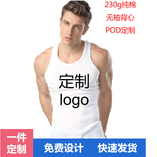 純綿ベスト、カスタムロゴ、越境販売、230g、ノースリーブ、プリント入りインナーシャツ、文化シャツ、メンズTシャツ、カスタム、越境販売
