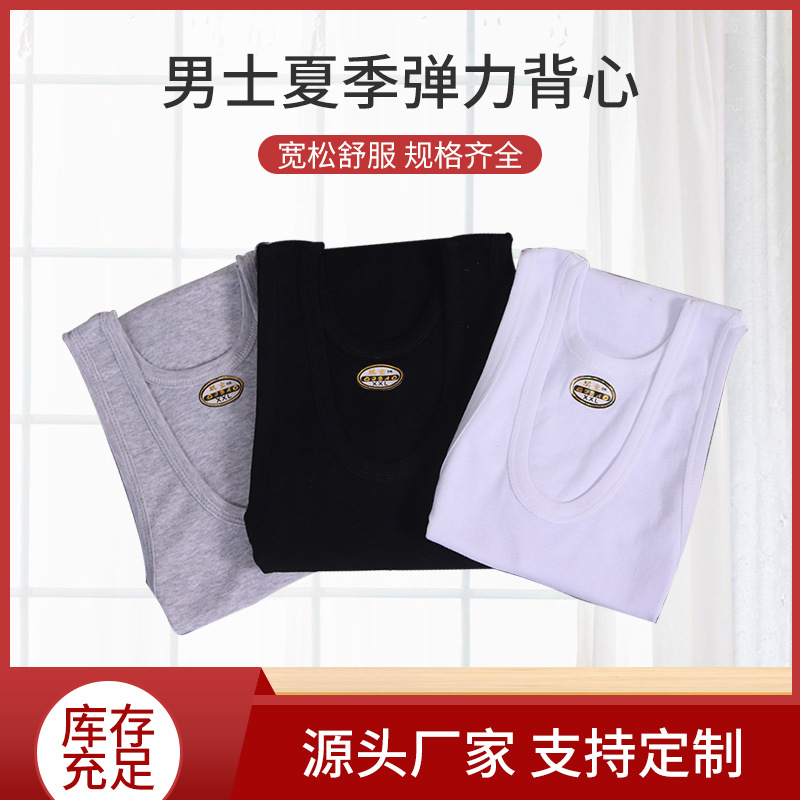 23夏のtシャツ男性青年純綿半袖ベスト通気性のある丸襟の底の老人の汗のシャツの白い卸売り