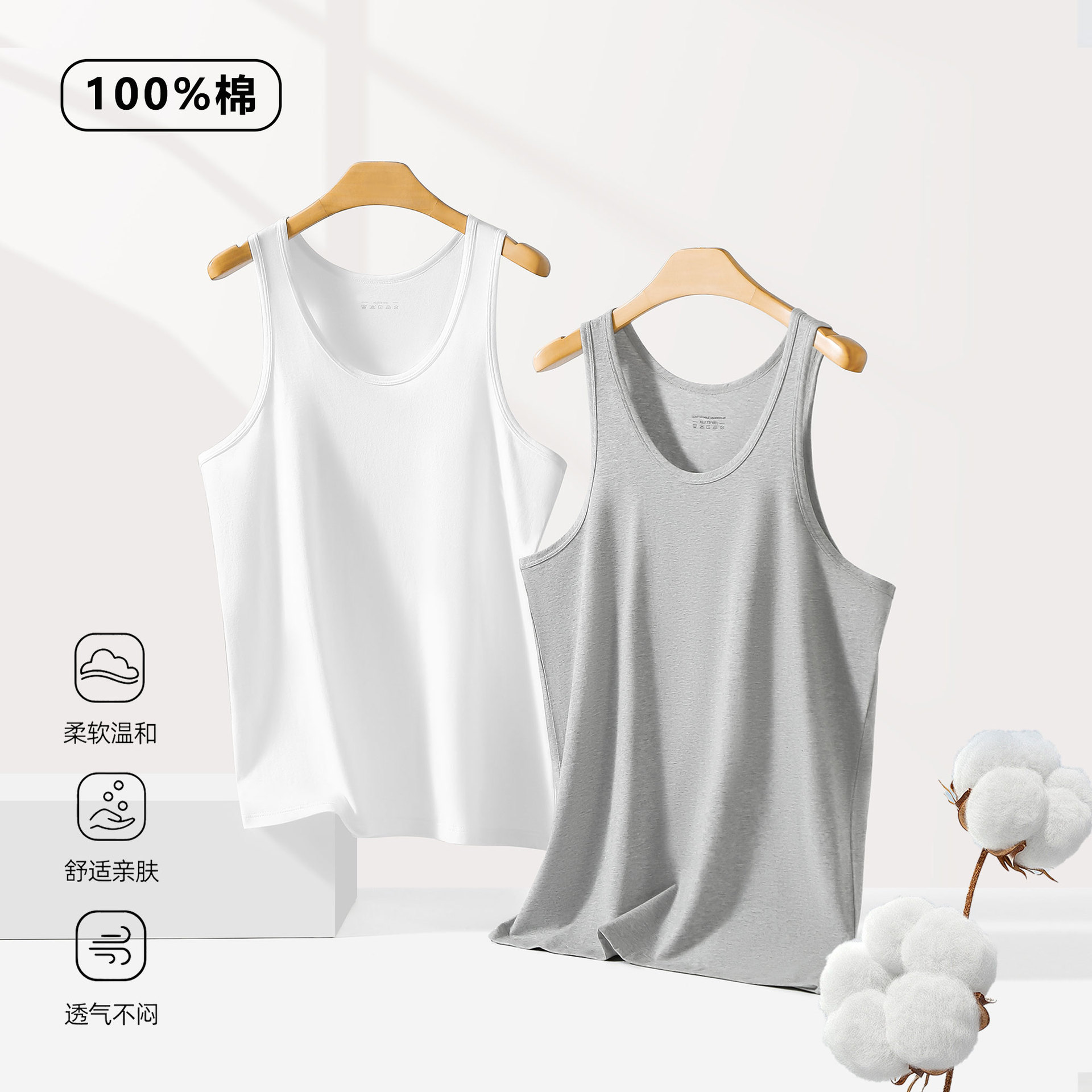 夏用メンズ純綿ベスト、汗取りシャツ、ノースリーブ薄手新疆綿フィットネス通気性スリムフィット快適