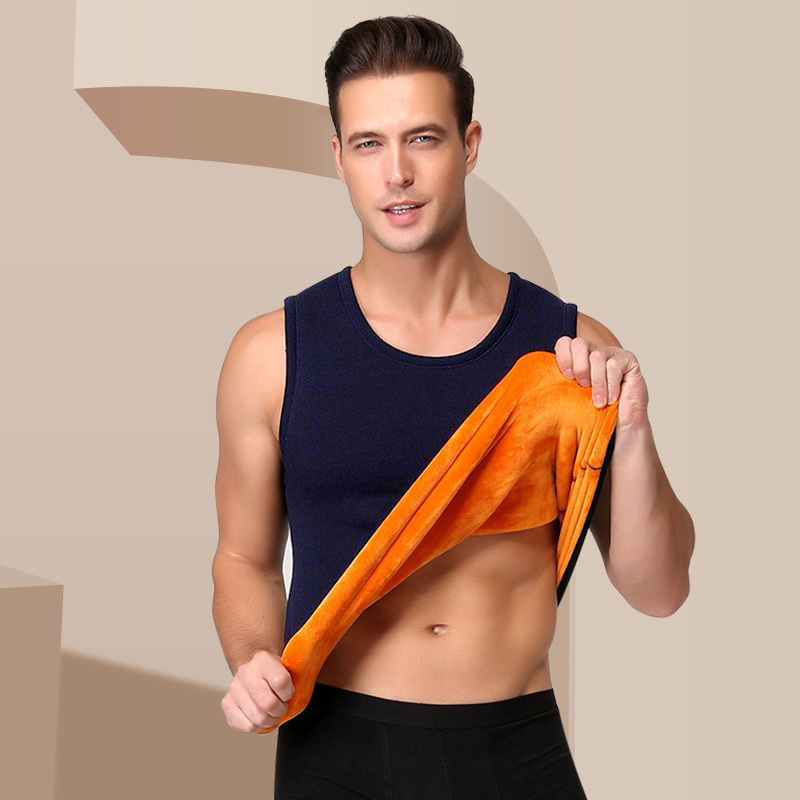 冬のベルベット保温ベスト男性運動カン肩袖なし底付き下着防寒無痕黄金パイル馬甲
