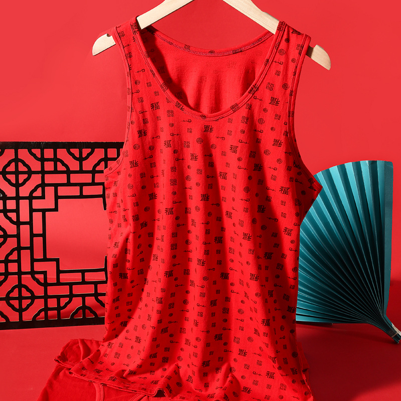 本命年の赤いベストの男性の純綿の全綿の福の下着のお父さんはゆったりとしています。