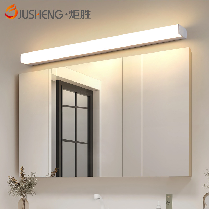 LEDミラーヘッドライト、パンチフリー、防水、防曇、バスルームミラーキャビネットライト、シンプルなバスルームライト、ステンレスアクリルランプ