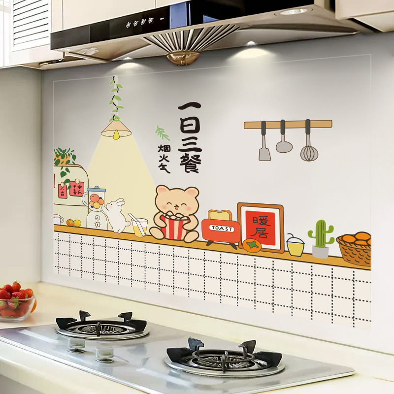 台所の防油シール防火耐高温調理台の自己接着防水静電壁にレンジフードの壁面に厚いフィルムを貼る