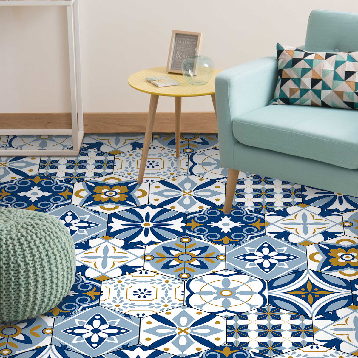 北欧はバロック風防水六角形の壁にトイレの滑り止め耐摩耗性床タイルのシールを貼っている