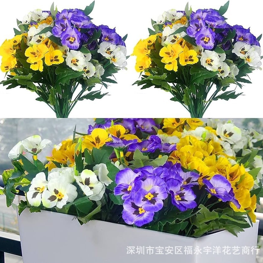 模造花絹花クロスボーダーブーケ五叉三色すみれウェディングシーン室内外花箱生け花飾り