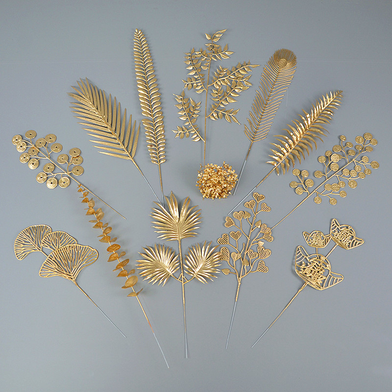 12頭の冬青果12頭の金果金色の扇子イチョウの葉紅果新年の発財桶生け花シミュレーション尤加利