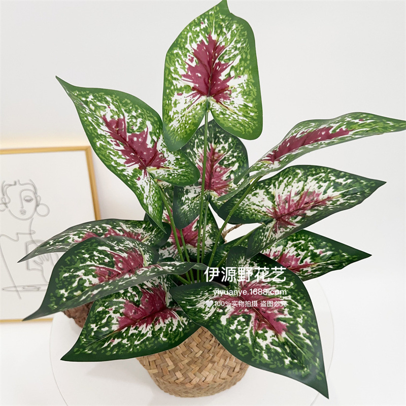 越境シミュレーションの葉の猫は棚の緑を植えて美人のバナナの葉の人工の生け花の部品のスイカの葉の象耳の葉を植えます。