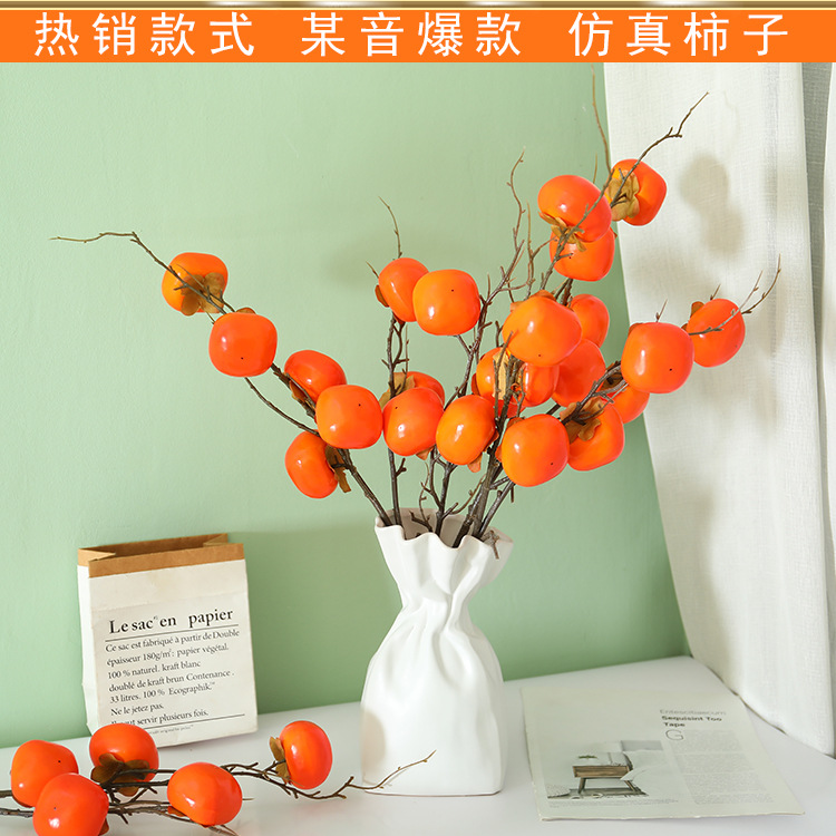 シミュレーション柿の赤い果実の財果の装飾の置物シミュレーション冬青の赤い果実の卸売りの造花のシミュレーションの花の置物