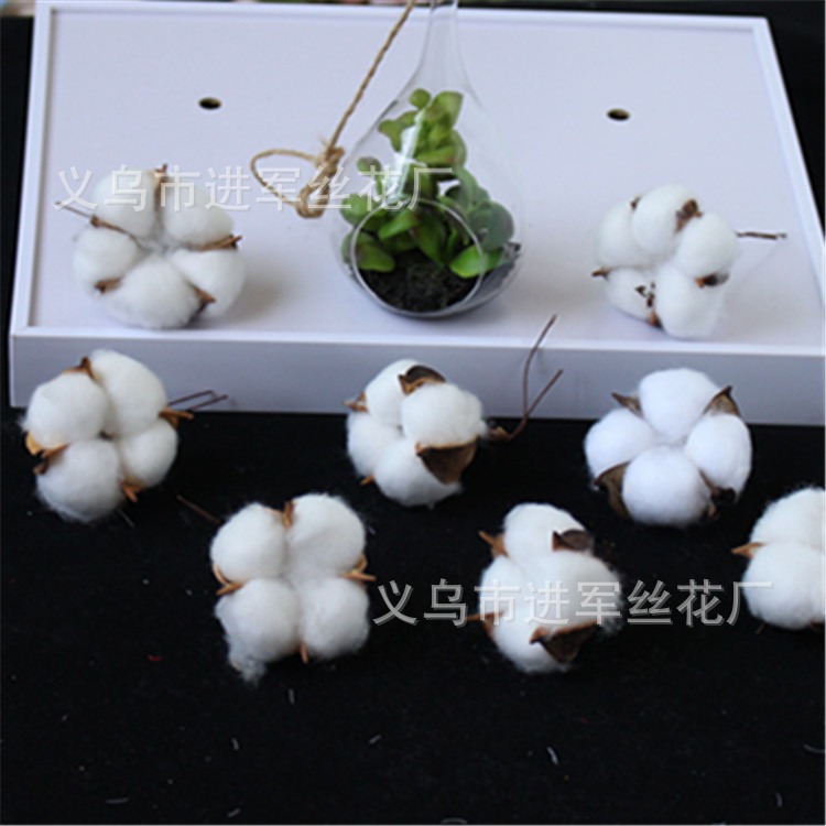 卸売りシミュレーションシングルヘッドの白い木の綿の頭の天然の乾いた花の枝の綿のクリスマス用品の花輪の永遠の花