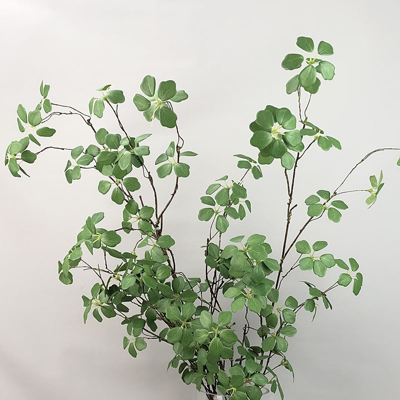 新しいモデルは尤加利の金銭の葉の造花のヨーロッパ式のシミュレーションの枝の家の結婚祝いの装飾の造花のシミュレーションの花です。