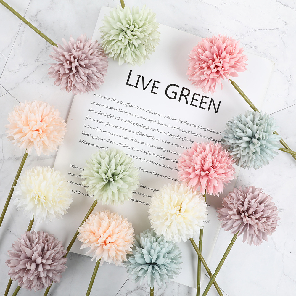 北欧風insホームソフト装飾シミュレーション花タンポポ結婚慶花ピンポン菊造景アジサイ造花装飾品