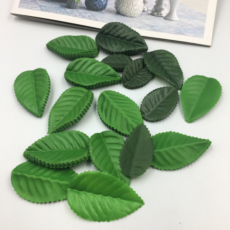 バラの葉の緑の葉のモノリシックシルクの布の葉の喜糖の箱の花輪の帽子のスリッパのdiyの部品をシミュレーションします。