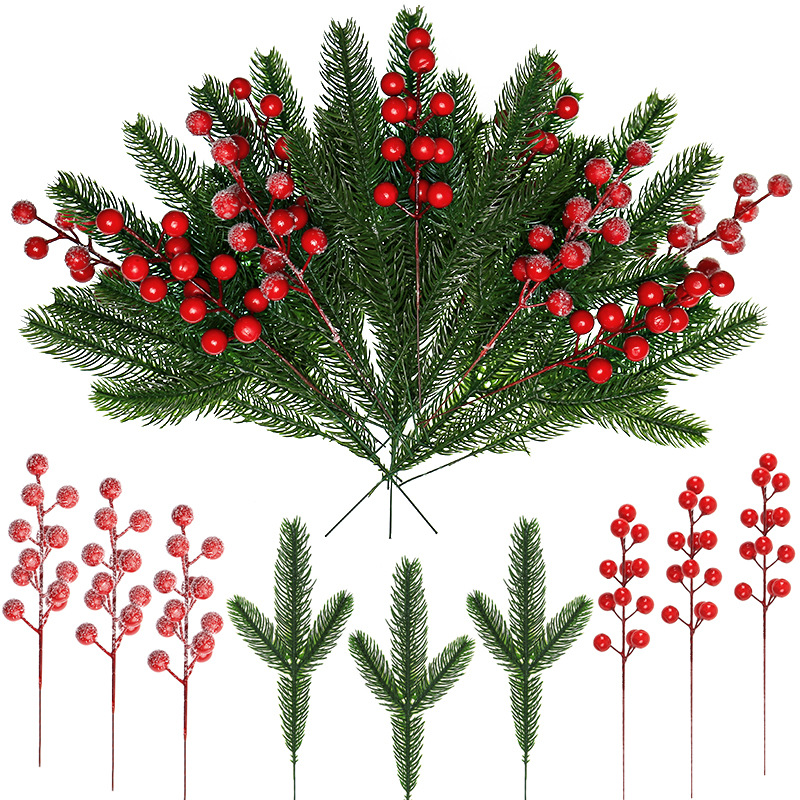 クロスボーダーの人気人工シミュレーション松の針のシミュレーション植物の偽の松の枝のクリスマスの結婚式の装飾の赤い果実のクリスマスの装飾