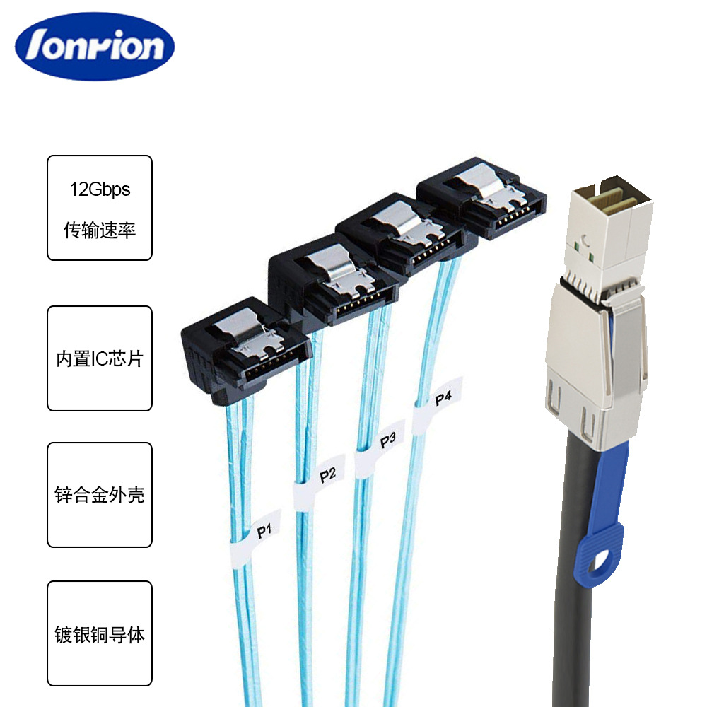 Mini sas hd SFF-8088 26p回転4x sata 7p 90度親サーバハードディスク接続ケーブル
