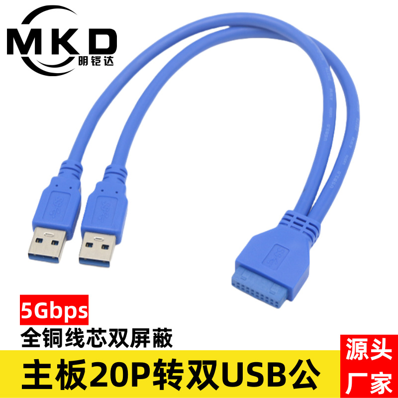 マザーボード20Pinメス二口USB3.0雄ヘッドケーブルコンピュータケースUSB拡張延長線全銅芯