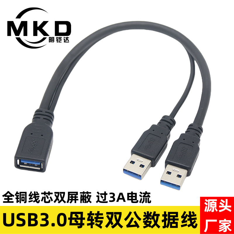メーカー直販usb3.0一分二データライン補助給電付きUSB一母二本延長線全銅
