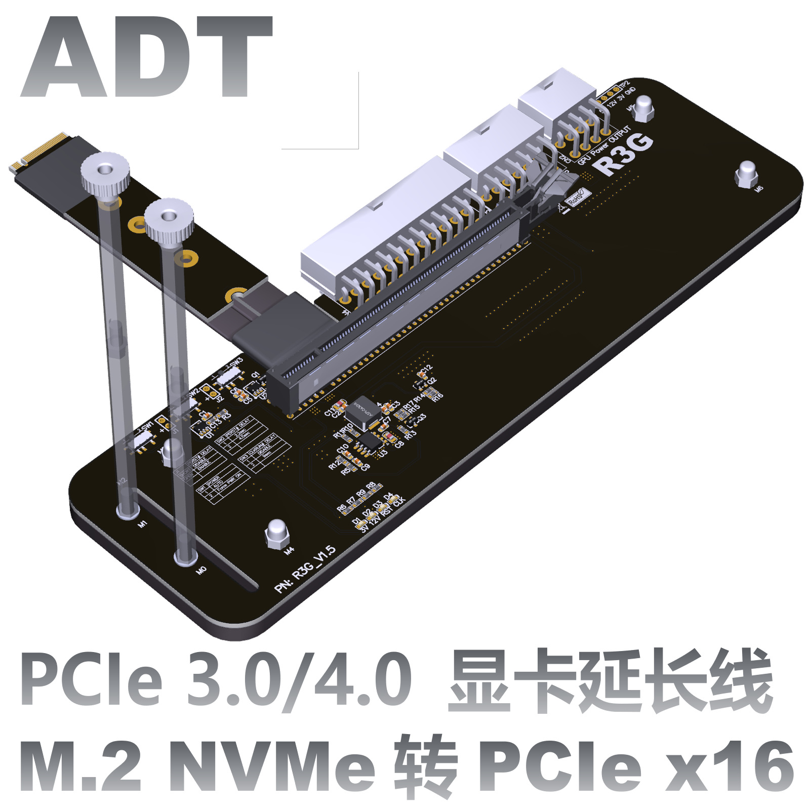 Sktc星開天pci真4.0ビデオカード延長線16xフルスピード安定ビデオカード縦装白黒スポット