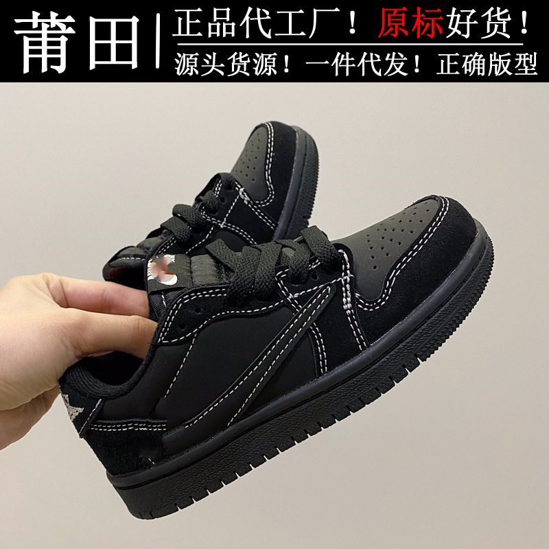 莆田童靴純原高バージョンAJ1低助フック黒武士喬一連名児童板靴男女童靴