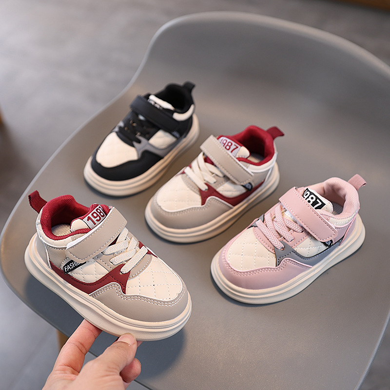子供革パネルシューズ 2025 春と秋の新男の子スポーツシューズ女の子の靴韓国スタイルの学生靴カジュアルシューズ