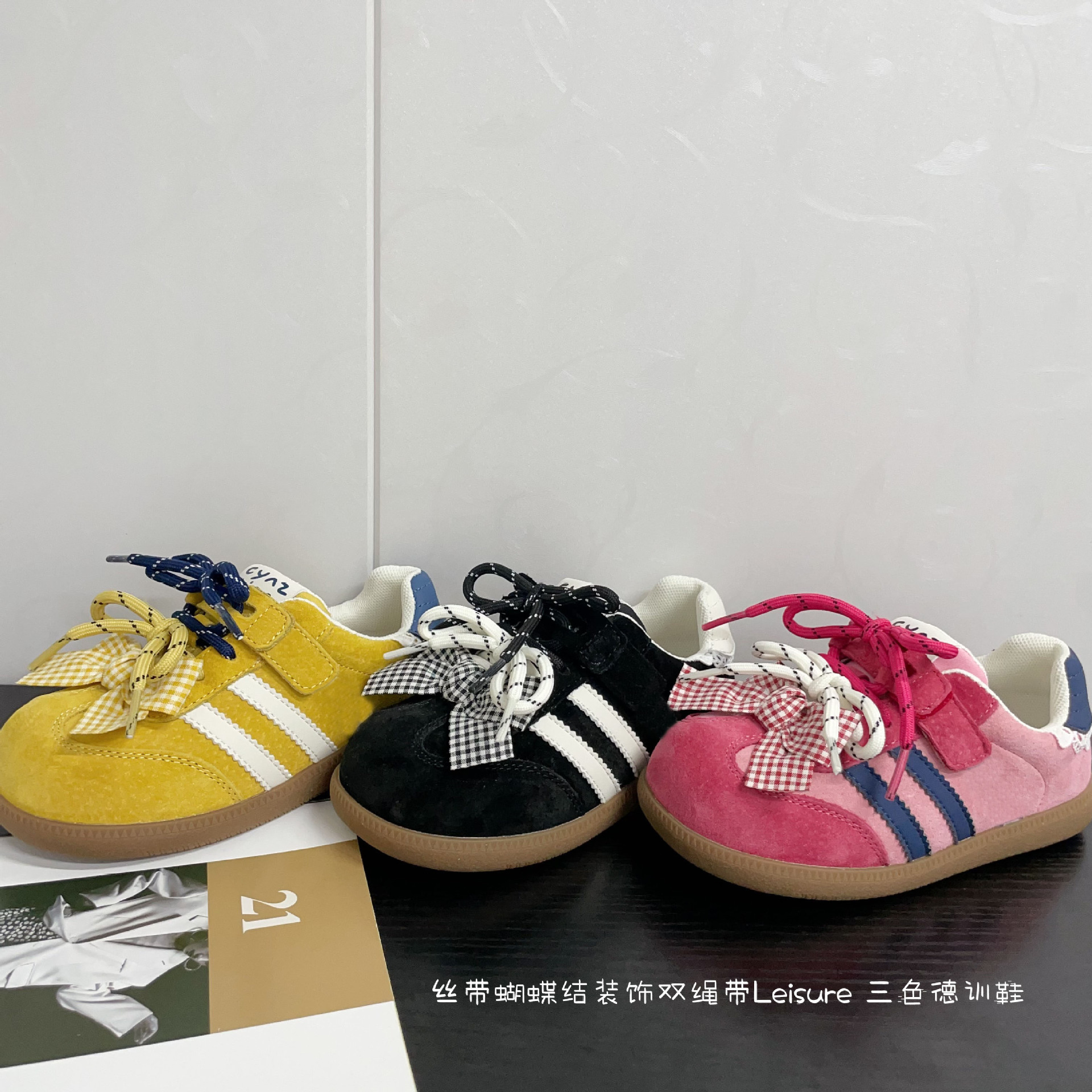 リボンリボン装飾子供用ダブルロープ三色道徳訓練靴 2025 秋スタイルレトロスニーカー男の子と女の子用