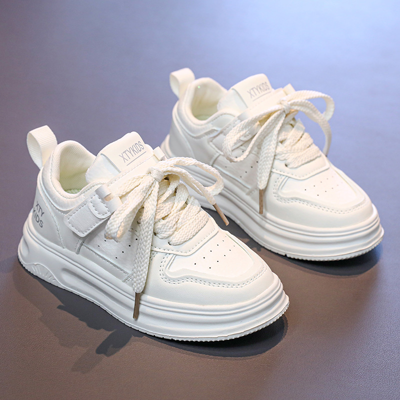 子供の白い運動靴の男の子の白い靴の皮の防水の学生の幼稚園の板の靴の春秋の女の子の白い靴