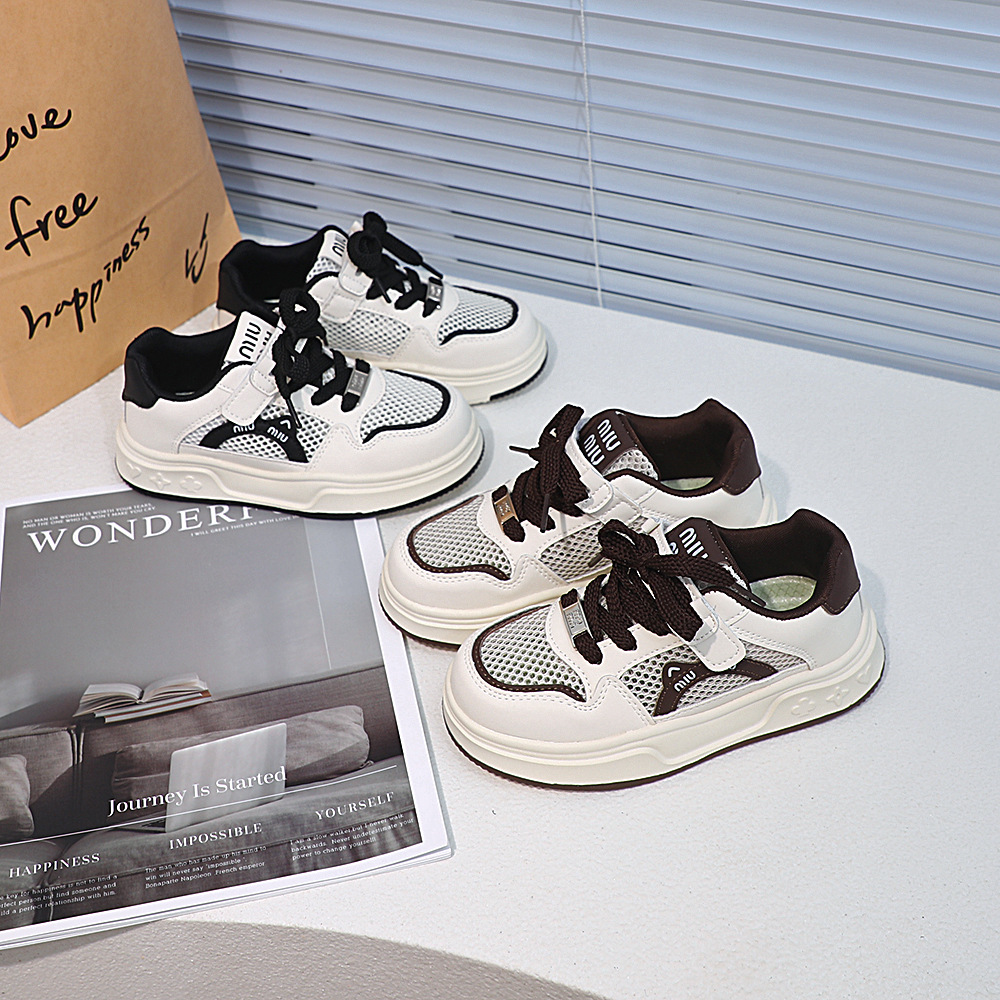 透網運動板靴男女児童2025春夏新作薄底ファッションレジャー児童靴マジックテープ