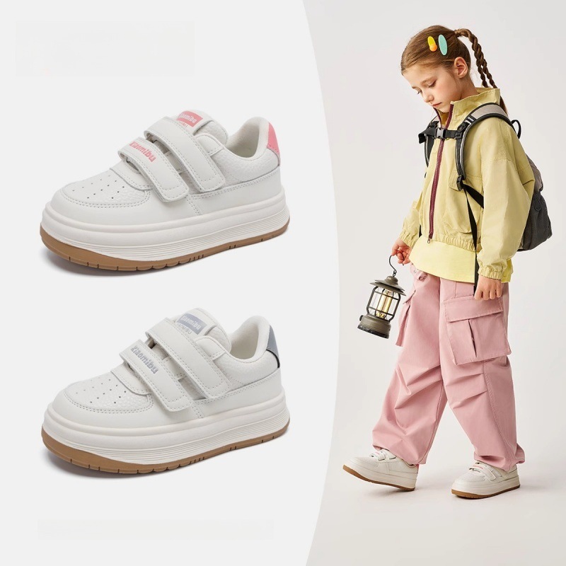 韓国版の女の子の板の靴の子供の白い靴の2025春の男の子の幼稚園の学歩の靴の滑り止めの機能の靴
