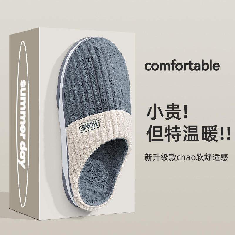 慈渓優諾靴業2024新型軟底家庭綿スリッパシンプルで軽やかで静かな室内カップルルームシューズ