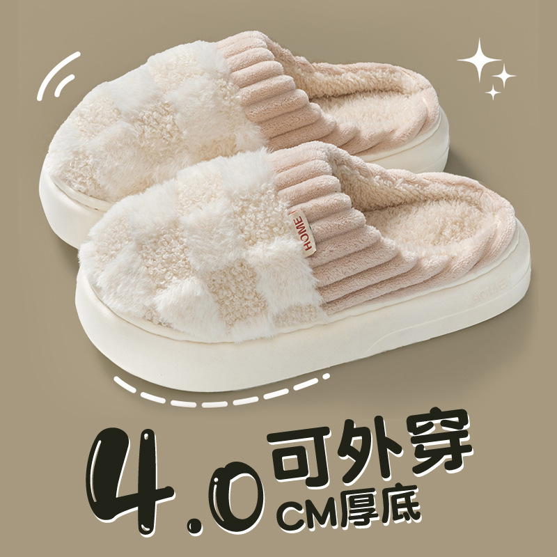 糞感綿スリッパを踏む女性秋冬2024新型室内家庭厚い底保温パイル月子スリッパ男