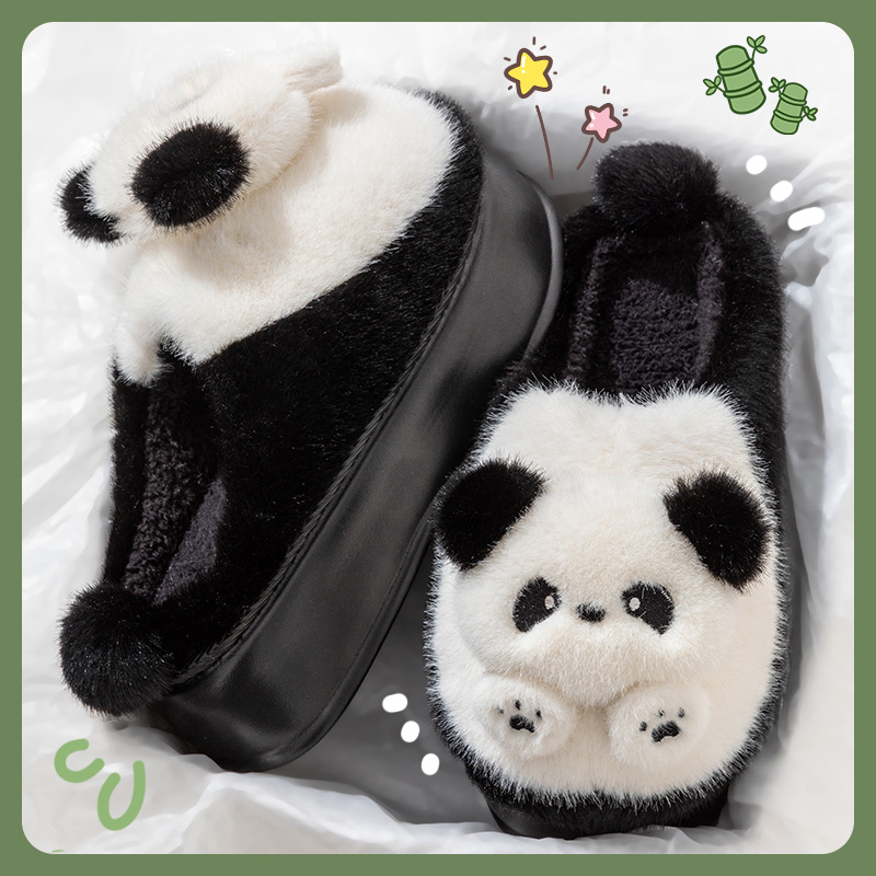 ハイヒールの厚い底のパンダの綿のスリッパの女性の秋冬の22024新型の外はぬいぐるみの保温のかわいい綿の女性を着ます。