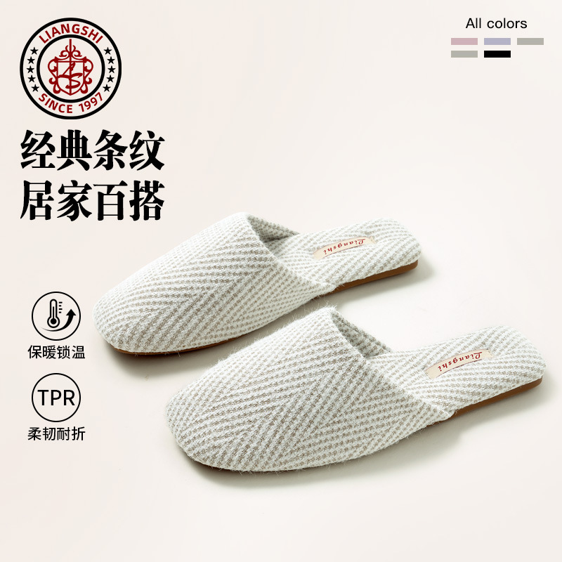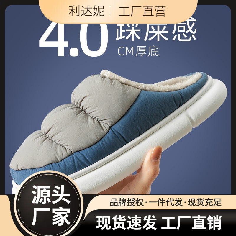 梁氏秋冬2024保温綿スリッパ絨面男家室内床モップ女牛筋底滑り止め静音靴