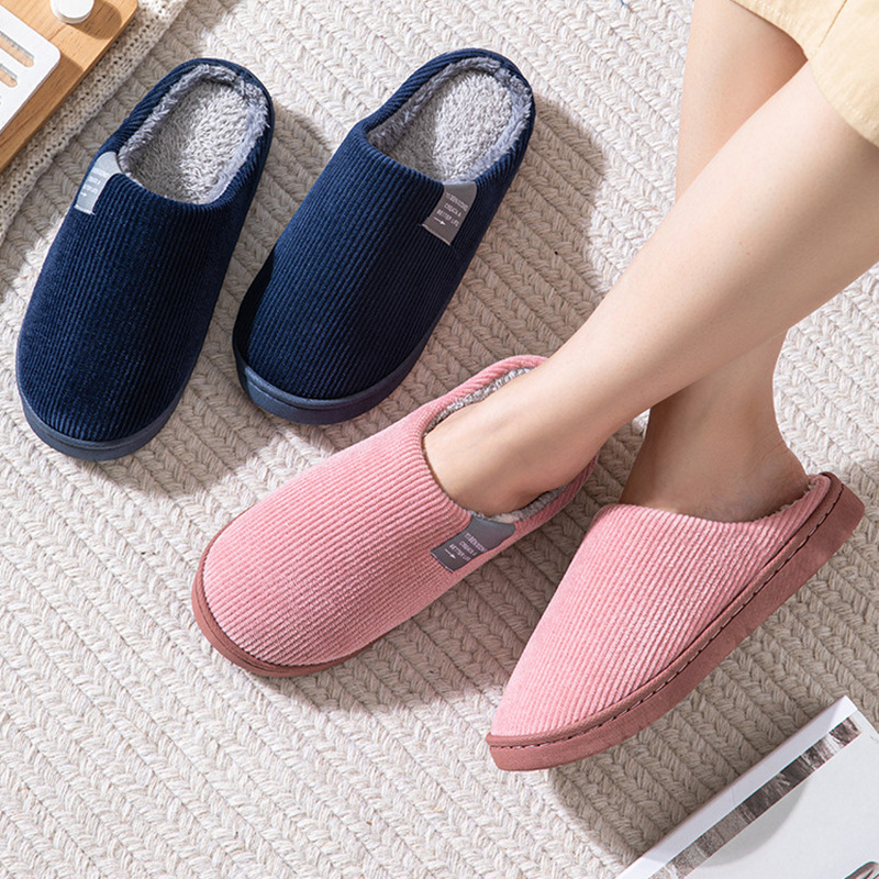ブランド縦条コーデュロイ男女カップル室内秋冬保温半包木床綿スリッパ綿靴月子靴