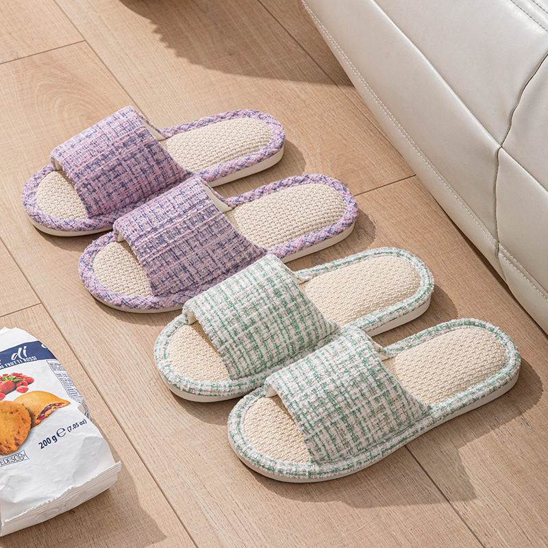 夏の中国風麻スリッパ 女性用 家庭用 カップル 春秋 室内用 軽量 オールシーズン カジュアルスリッパ 快適