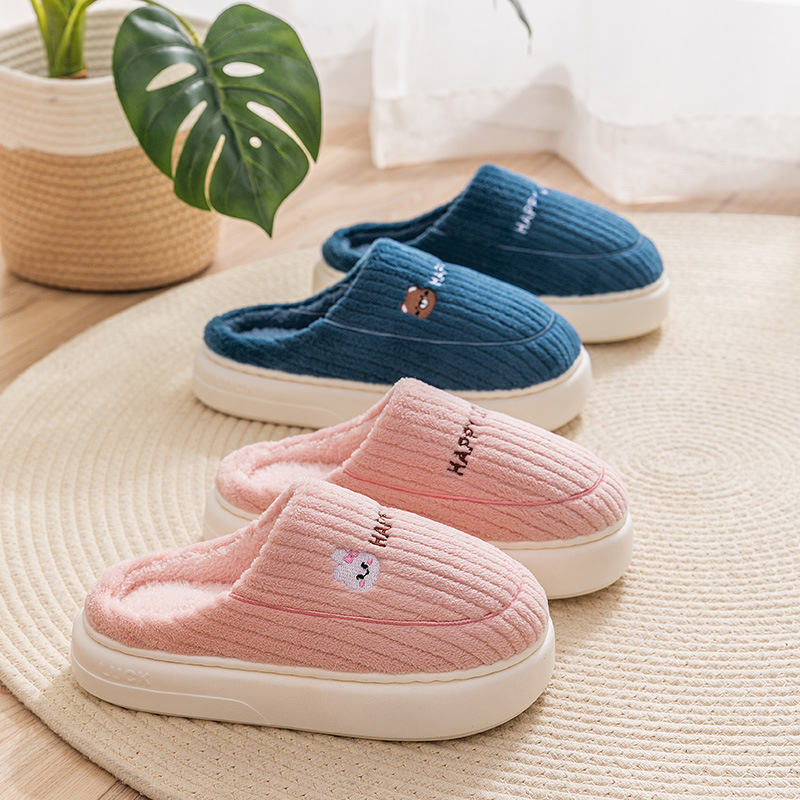 起爆布芸パイル綿スリッパかわいい女性冬滑り止めカップル家庭保温家室内男月子綿靴