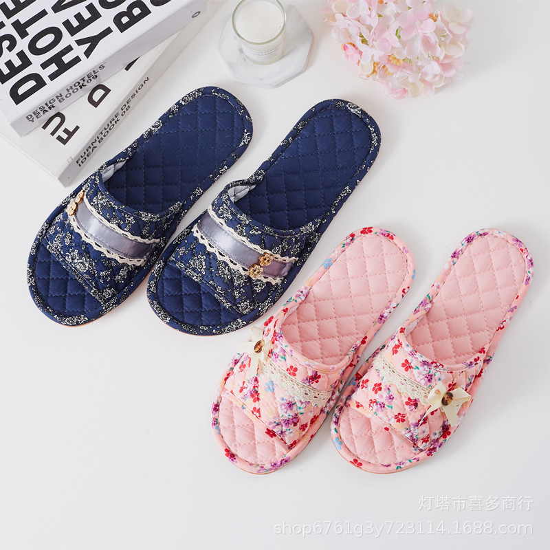 韓国版布芸綿スリッパ男女室内滑り止め牛筋底カップル床スリッパ卸売り春秋夏