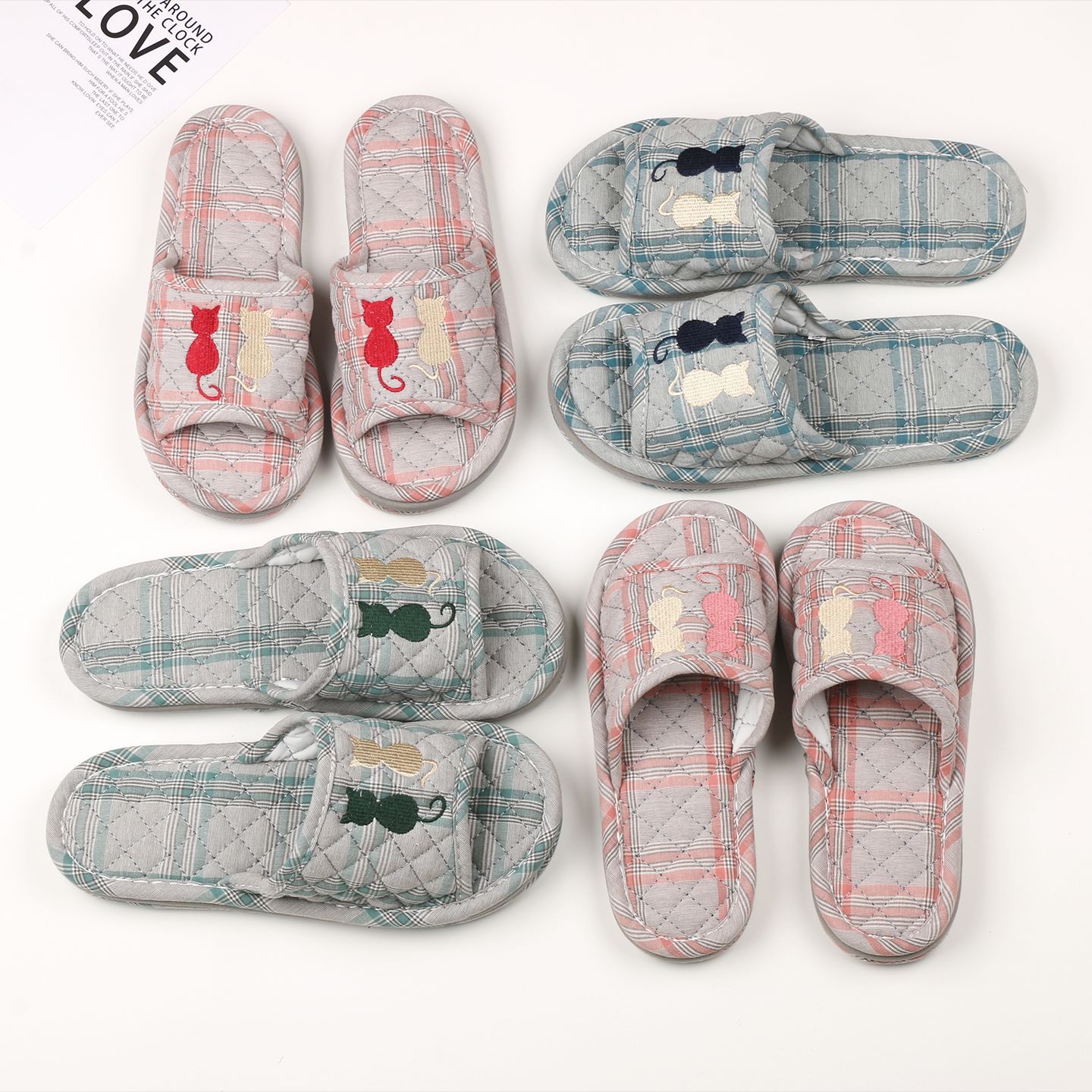 新韓版家庭用室内布製スリッパ、包み込み型、シングルレイヤー、静音、つま先が覆われている、四季対応、フロアシューズ、産後用シューズ、卸売