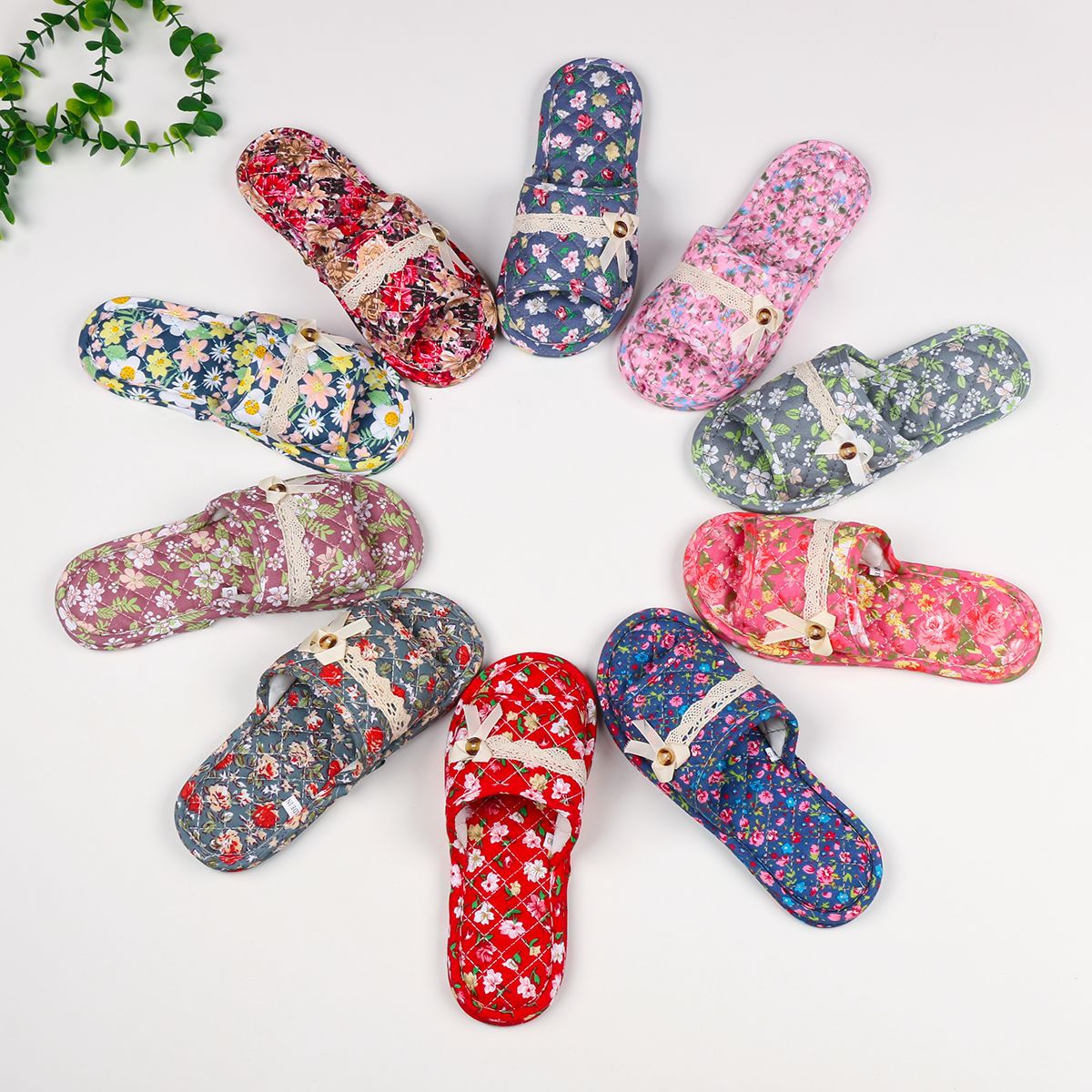 夏の家庭の寝室の中の厚い底の花の布のスリッパの女性のカップルの家の滑り止めの耐摩耗性の家庭用の布のスリッパ