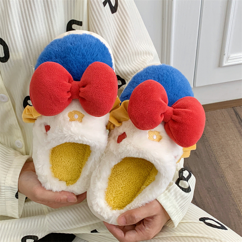綿のスリッパの女性の秋冬の新型のアニメの王女の蝶結びの学生の子供の綿は滑り止めの柔らかい底の親子のスリッパを引っ張ります。