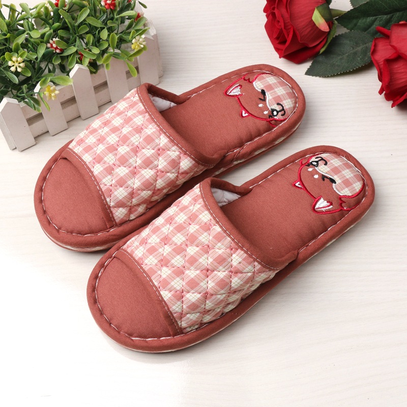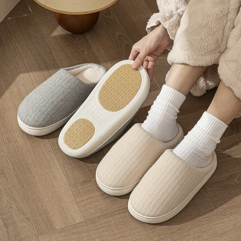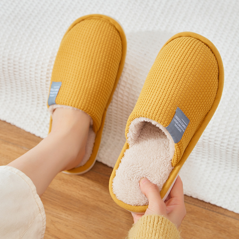 起爆布芸パイル綿スリッパかわいい女性冬滑り止めカップル家庭保温家室内男月子綿靴