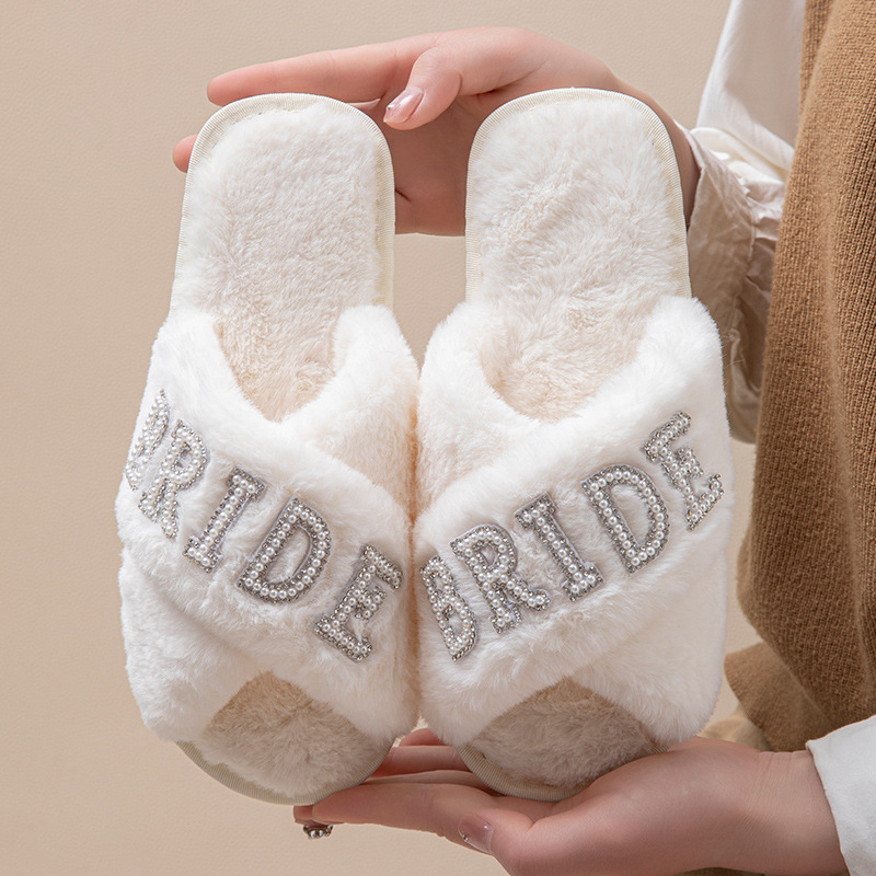 BRIDE IDO MRS パールレター花嫁ぬいぐるみスリッパパーティーギフトヨーロッパとアメリカの国境を越えた人気の毛皮のスリッパ